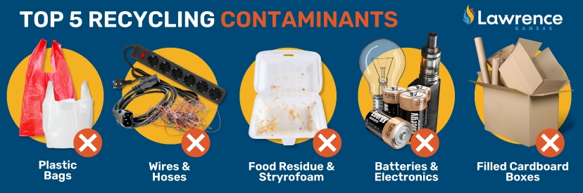 In short, keeping recyclables clean and correctly sorted protects valuable resources, keeps more materials out of the landfill, and helps the City avoid costly fees and penalties — ensuring more of your recycling dollars go toward improving Lawrence.